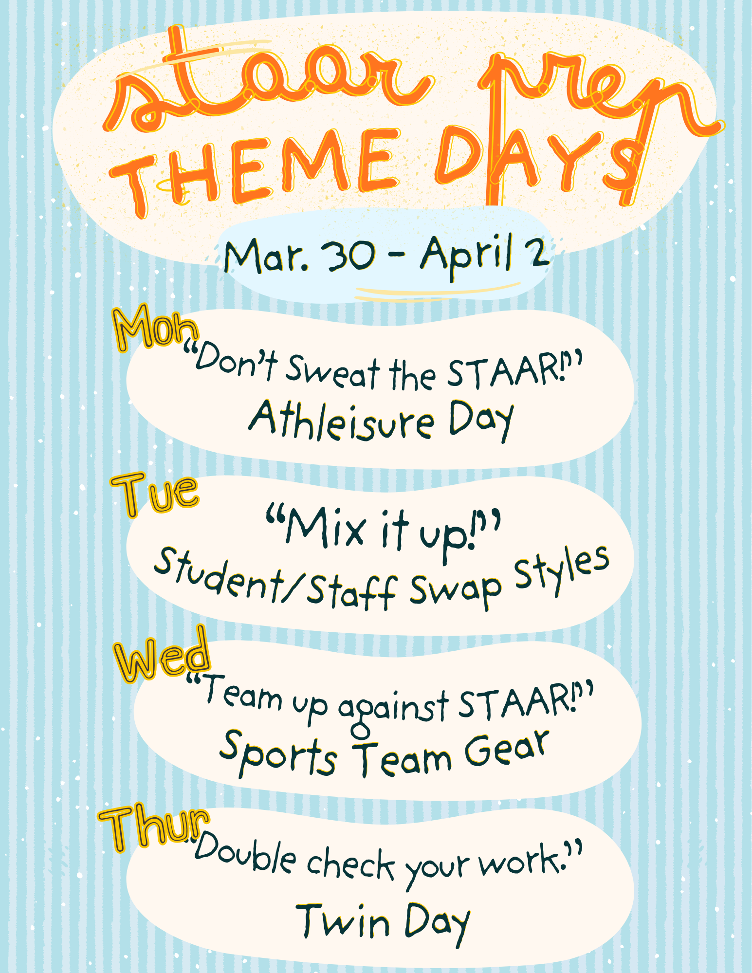 March 2nd - 6th. Please remember March 6th is an Early Release Day for Spring Break.