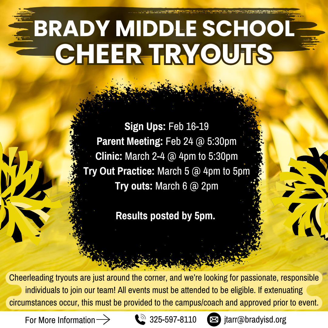 Happy Thursday! I hope everyone was able to stay warm and safe during the freeze. Spring semester is in full swing and that means busy season for Brady ISD. Below you will find some key events/dates we have coming up.